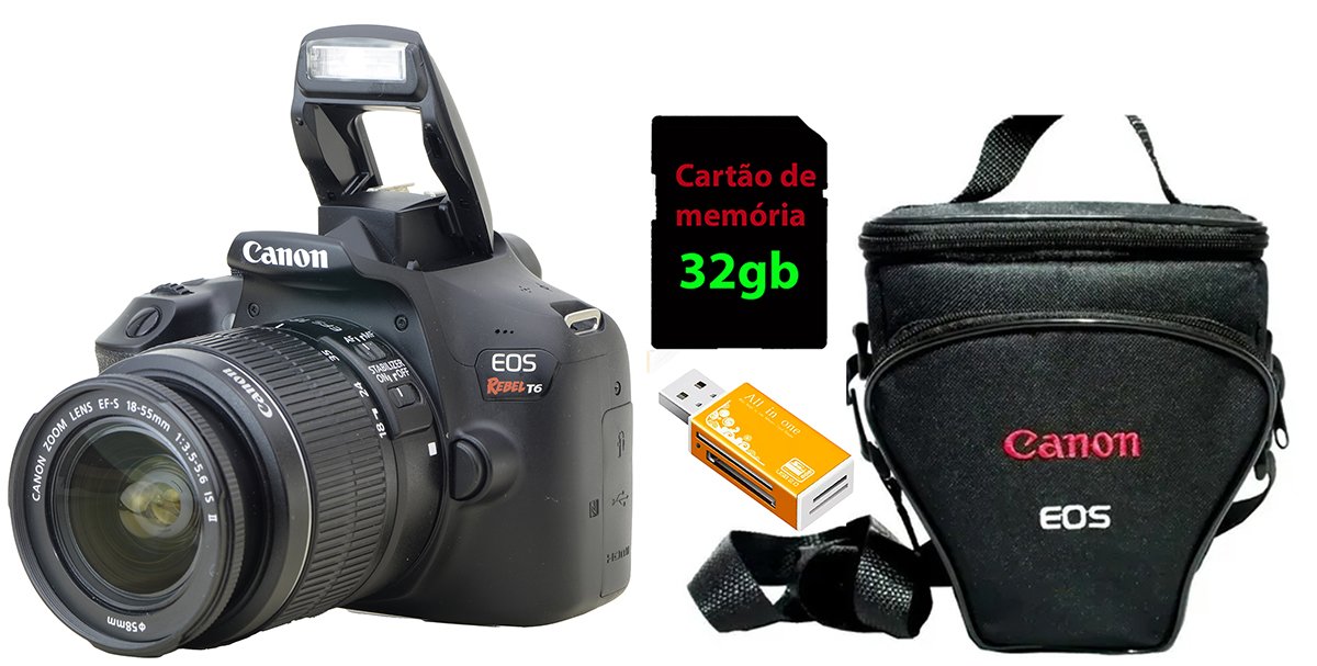 Canon T6 + 18-55mm + 32gb + Bolsa Só 4.309 Cliques