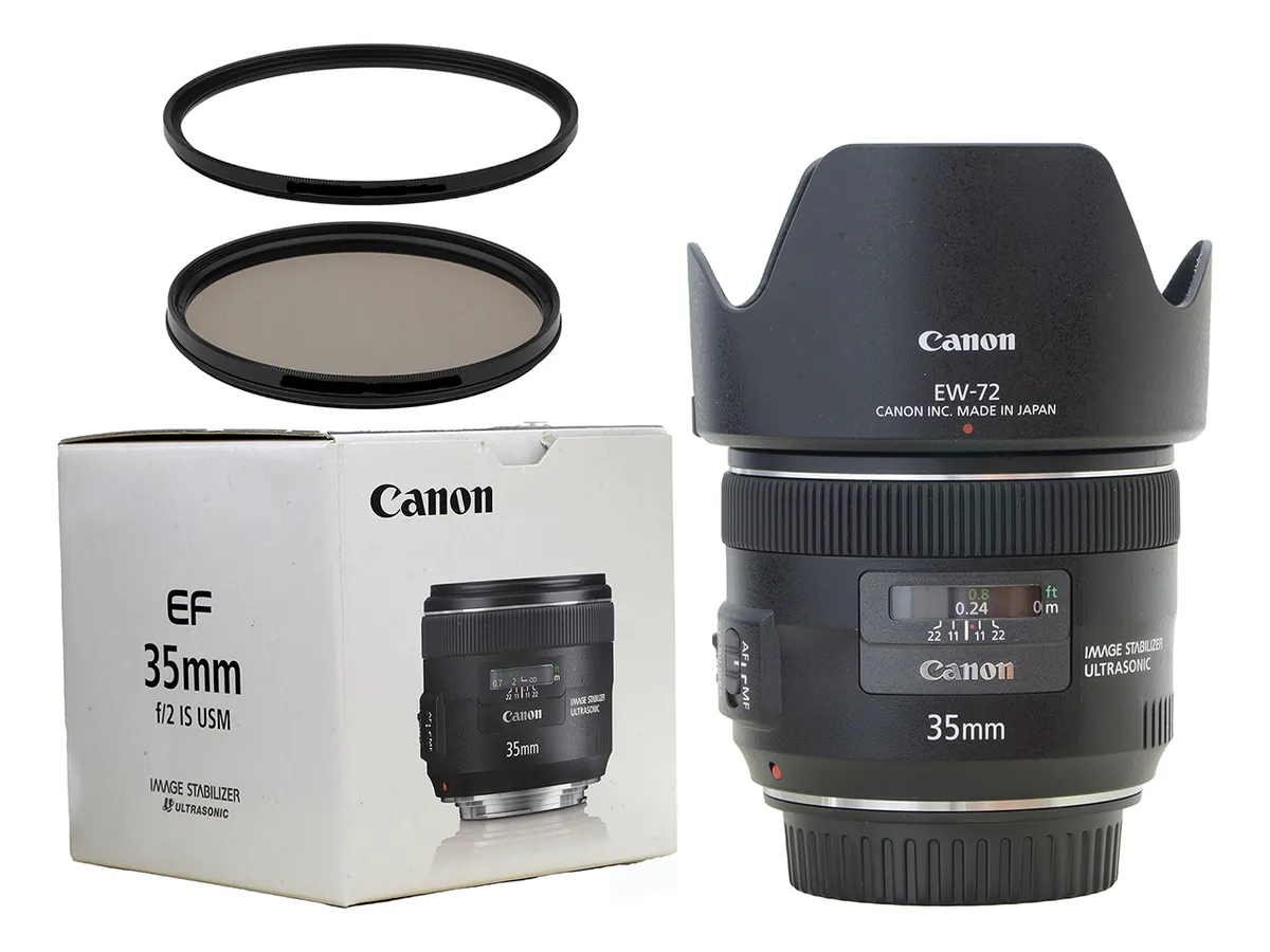 Objetiva Canon 35mm 2.0 Ef Is Usm Zerada +2 Filtros +parasol Canon Ef Preto (Usado)